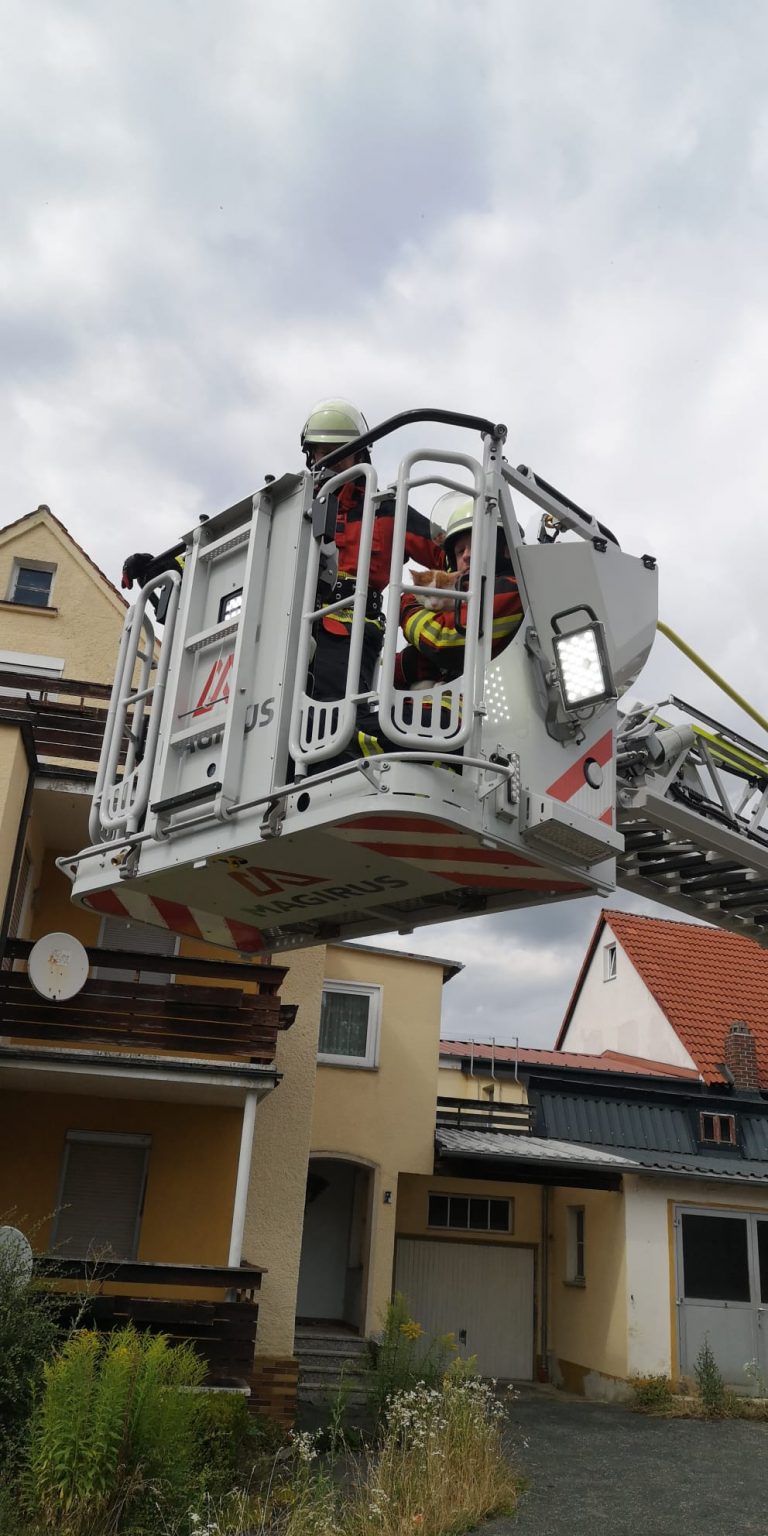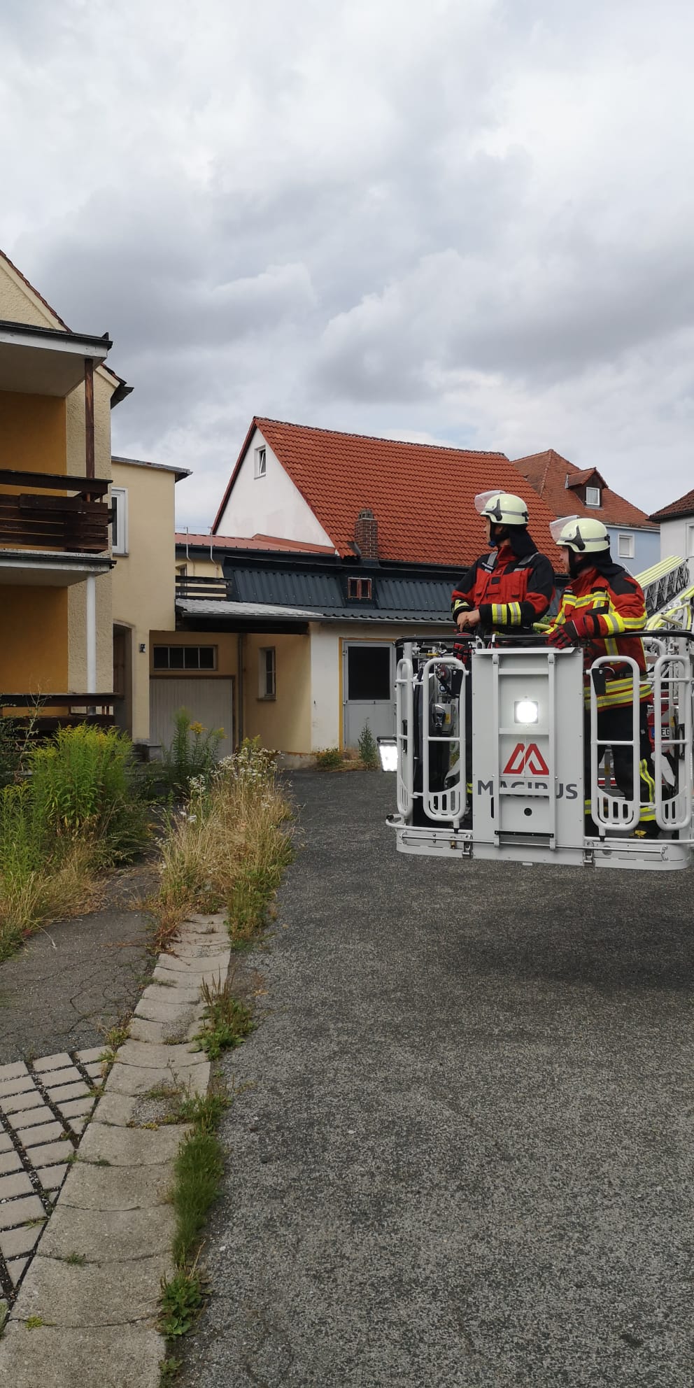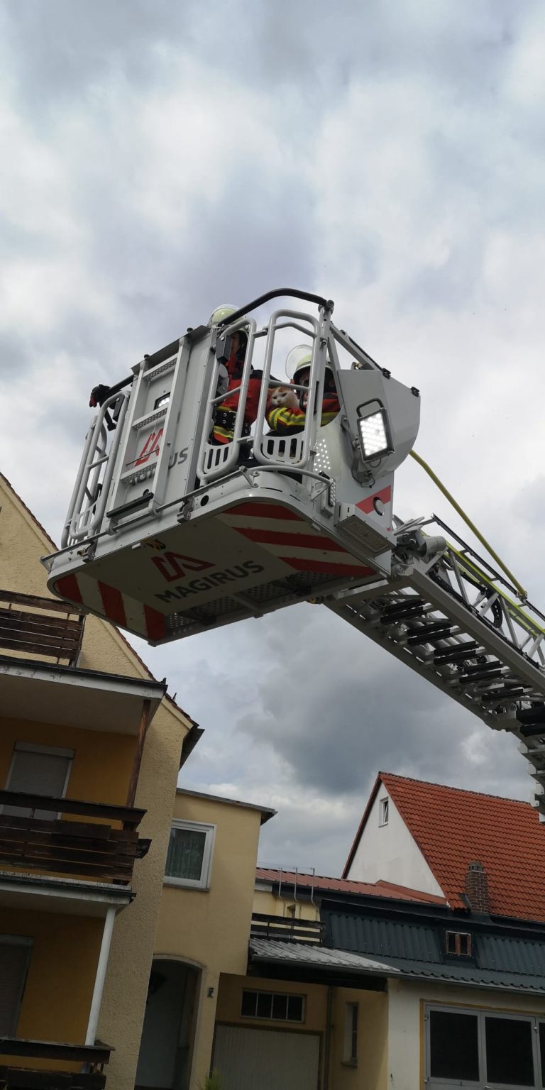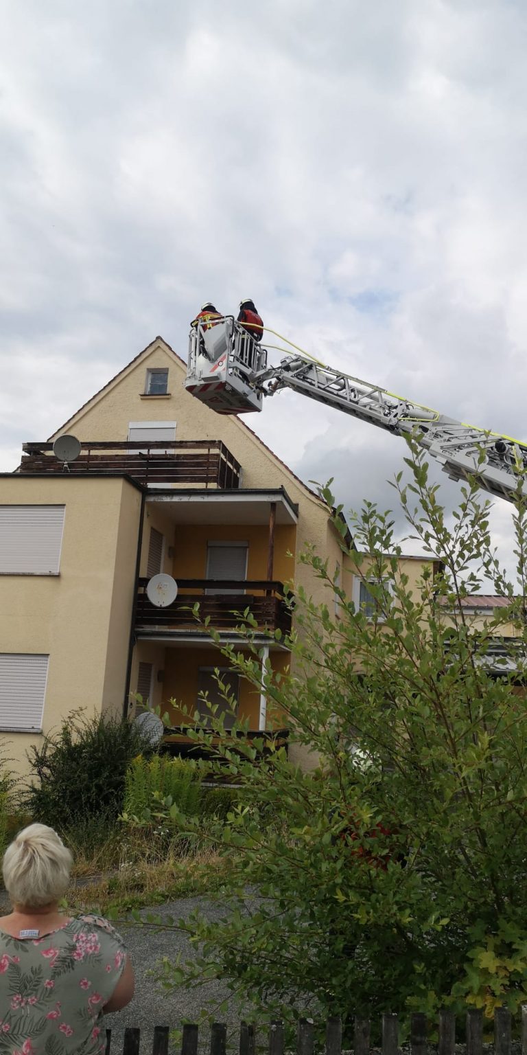Am Freitagnachmittag wurden wir von besorgten Anwohnern in den Neuhoferweg zu einer hilflosen Katze auf einem Balkon gerufen. Wir nahmen die Katze mittels Drehleiter auf und konnten sie aus ihrer misslichen Lage befreien.