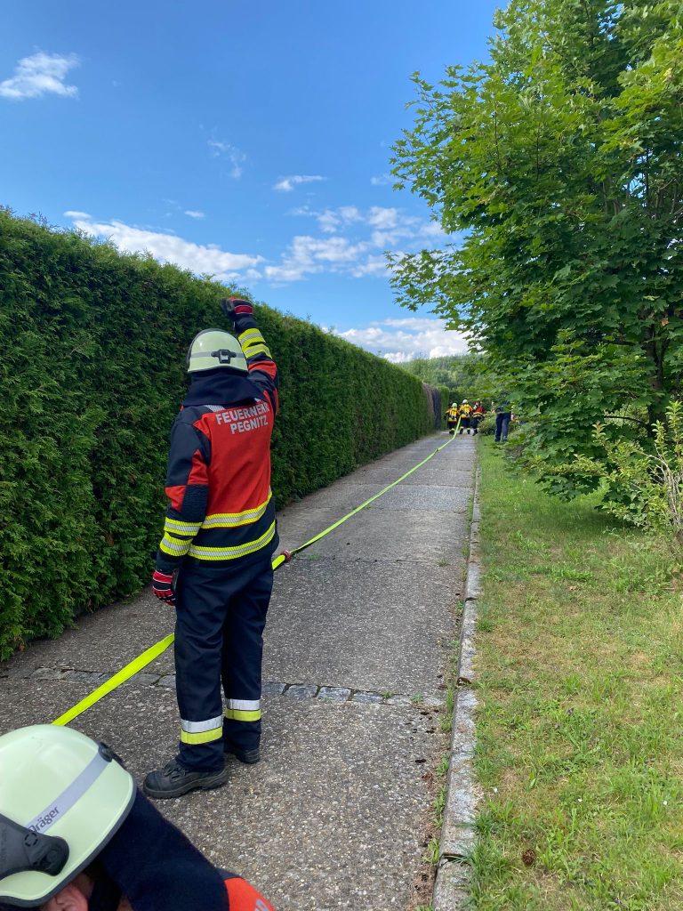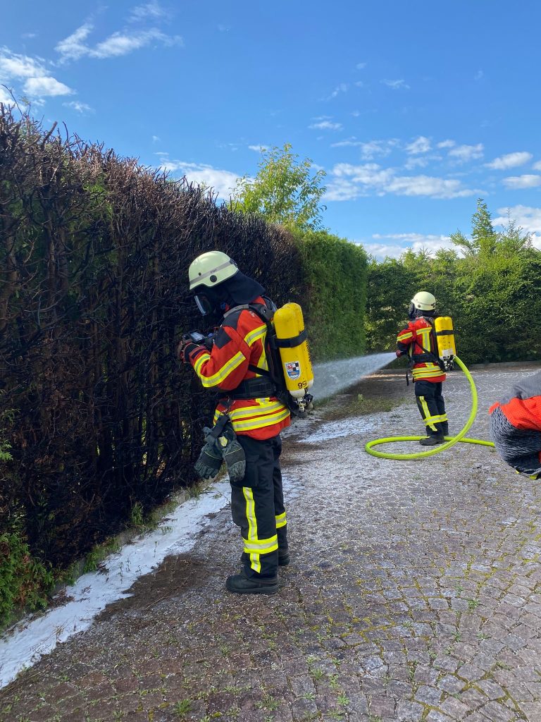 Am Dienstagnachmittag wurden wir ins Industriegebiet Kleiner Johannes zu einem Flächenbrand alarmiert. Bei unserem Eintreffen stand eine Tujahecke z.T. in Vollbrand. Mit einem Trupp unter Pressluftatmer wurde der Brand rasch gelöscht und mit der Wärmebildkamera auf verbleibende Glutnester kontrolliert.