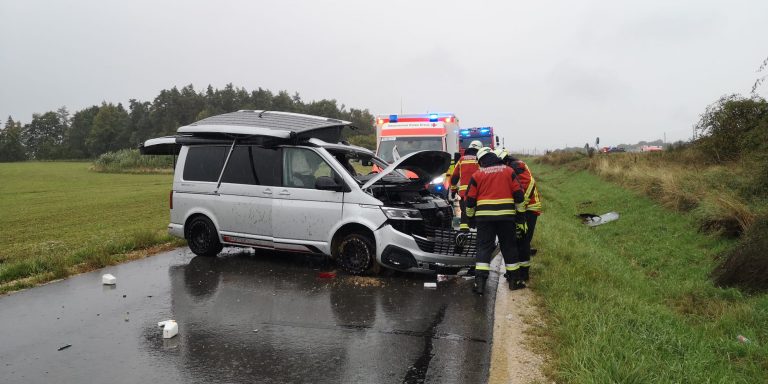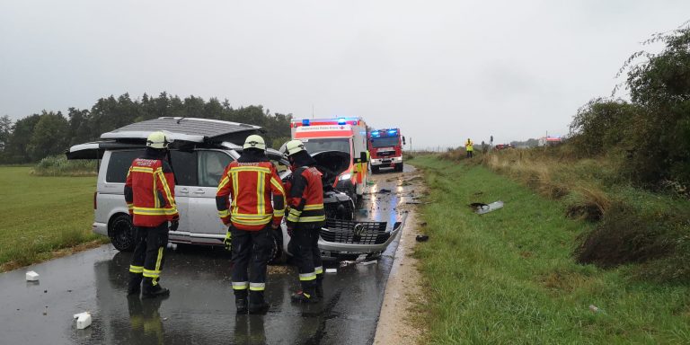 Heute Montagnachmittag wurden wir zusammen mit der Feuerwehr Trockau erneut auf die A9 alarmiert. Direkt an der Behelfsausfahrt Höhe Körbeldorf wurde eine Verkehrsteilnehmern mit ihrem VW-Bus, nach eigenen Worten, von der Fahrbahn abgedrängt, fuhr auf eine Leitplanke, welche sich dann als „Sprungschanze“ erwies und überschlug sich anschließend auf der paralell verlaufenden Gemeindeverbindungsstraße die von Körbeldorf nach Büchenbach führt.