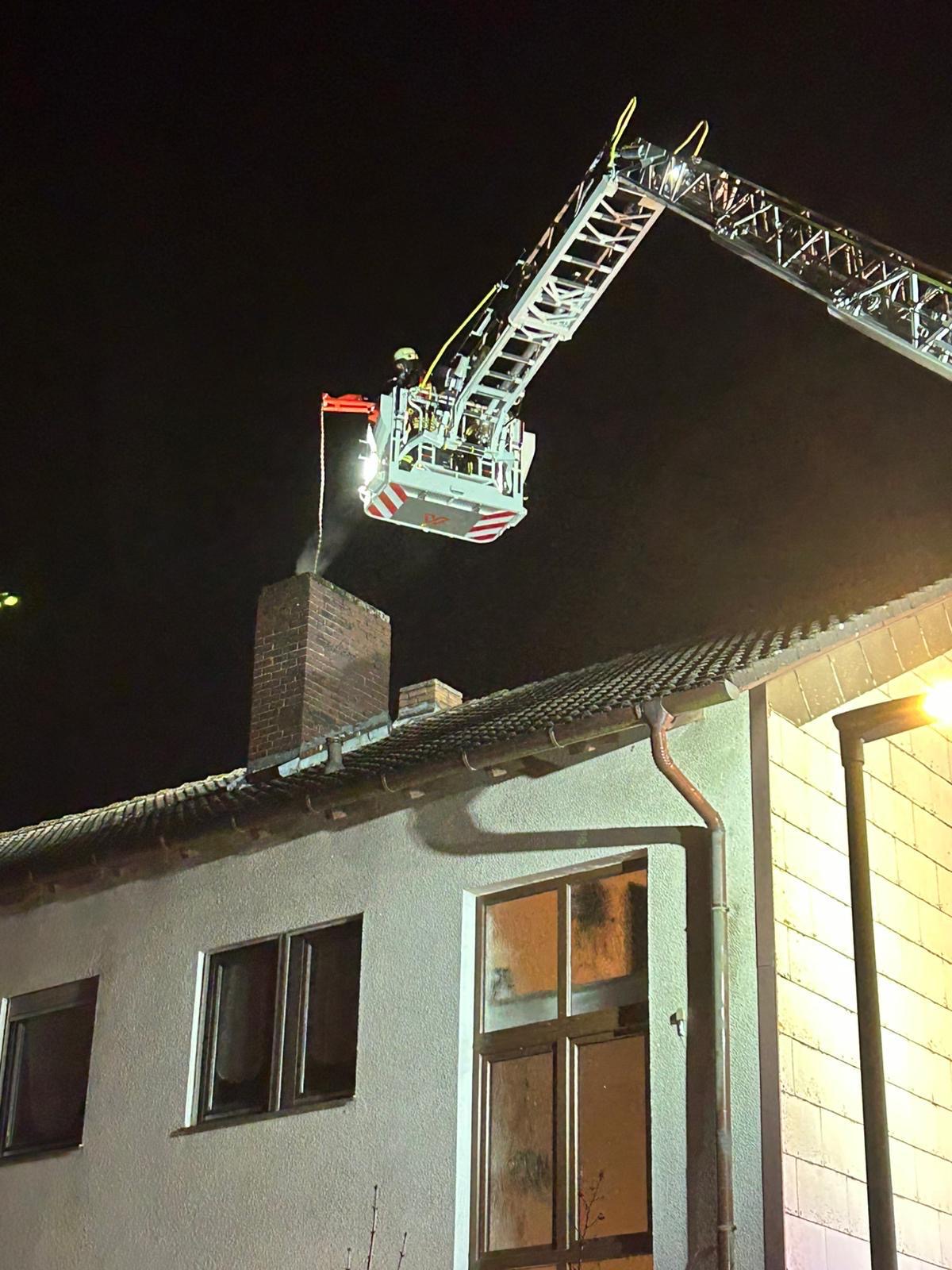 Unsere Aufgaben bestanden darin den Kamin von der glimmenden Glut zu befreien, den Kamin einmal von oben nach unten durchzukehren und von schädlichen Gasen freizumessen. Schließlich wurde die Einsatzstelle zusammen mit den Führungskräften der Feuerwehr Kirchenbirkig dem Kaminkehrer übergeben.