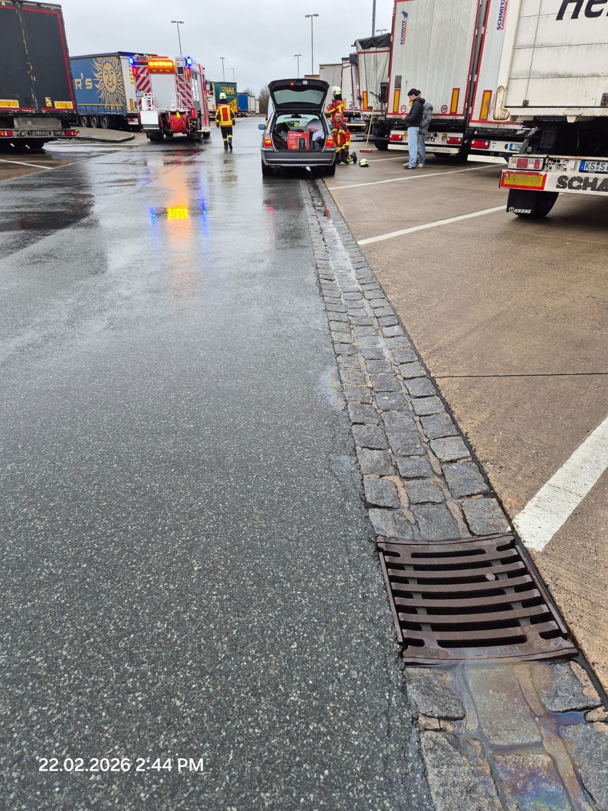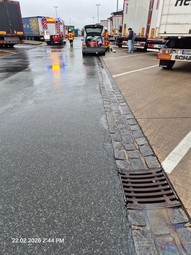 Kurz nach dem vorherigen Einsatz (Nr.35 – BMA) wurden wir dieses Mal auf die Tank- und Rastanlage Fränkishe Schweiz / Pegnitz alarmiert. Dort verlor, aufgrund eines technischen Defekts, ein PKW Öl. Der PKW stand augerechnet auf einer Regenablaufrinne welche direkt zu einem Gully führte und die dort gesammelten Flüssigkeiten in einem Regenüberlaufbecken münden.