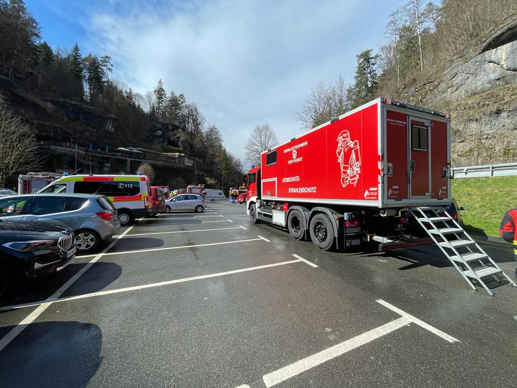Zu einem Gasaustritt wurden wir am Dienstagnachmittag nach Pottenstein alarmiert. Nach Erkunden der Lage durch die Feuerwehr Pottenstein konnte nichts festgestellt werden. Neben uns waren die Feuerwehren aus Glashütten, Kirchenbirkig, und Kühlenfels. Außerdem waren die Malteser aus Waischenfeld das BRK Pegnitz sowie die Bergwacht Pottenstein vor Ort.