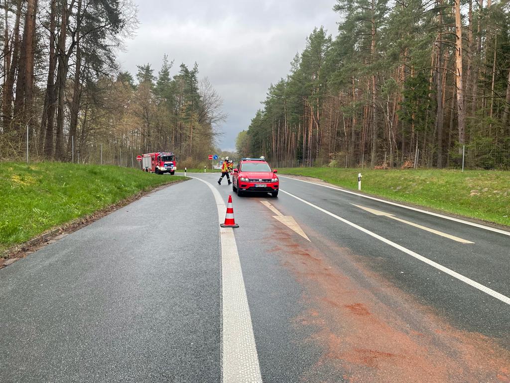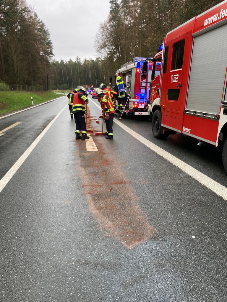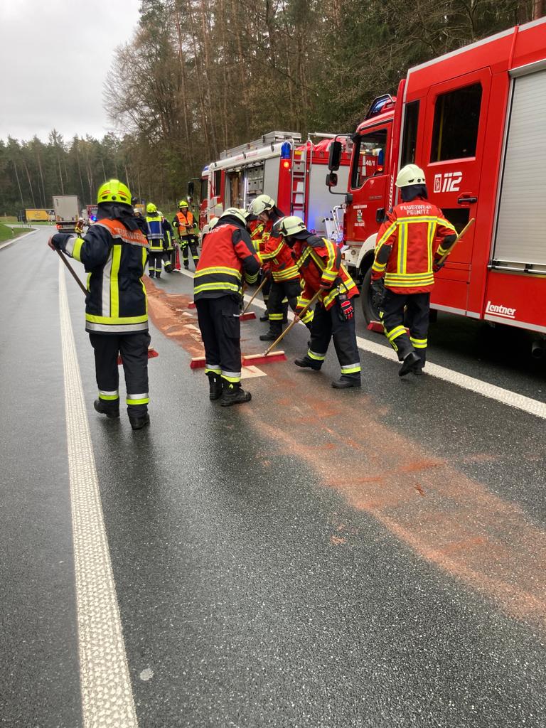 Am Dienstagmorgen wurden wir zur Ausfahrt Pegnitz der Bundesautobahn 9 in Fahrtrichtung Berlin alarmiert. Eine Ölspur ca. 1 Meter breit und 40 Meter lang wurde mit Bindemittel aufgenommen. Die Feuerwehr aus Plech und Ottenhof/Bernheck unterstützte uns hierbei.